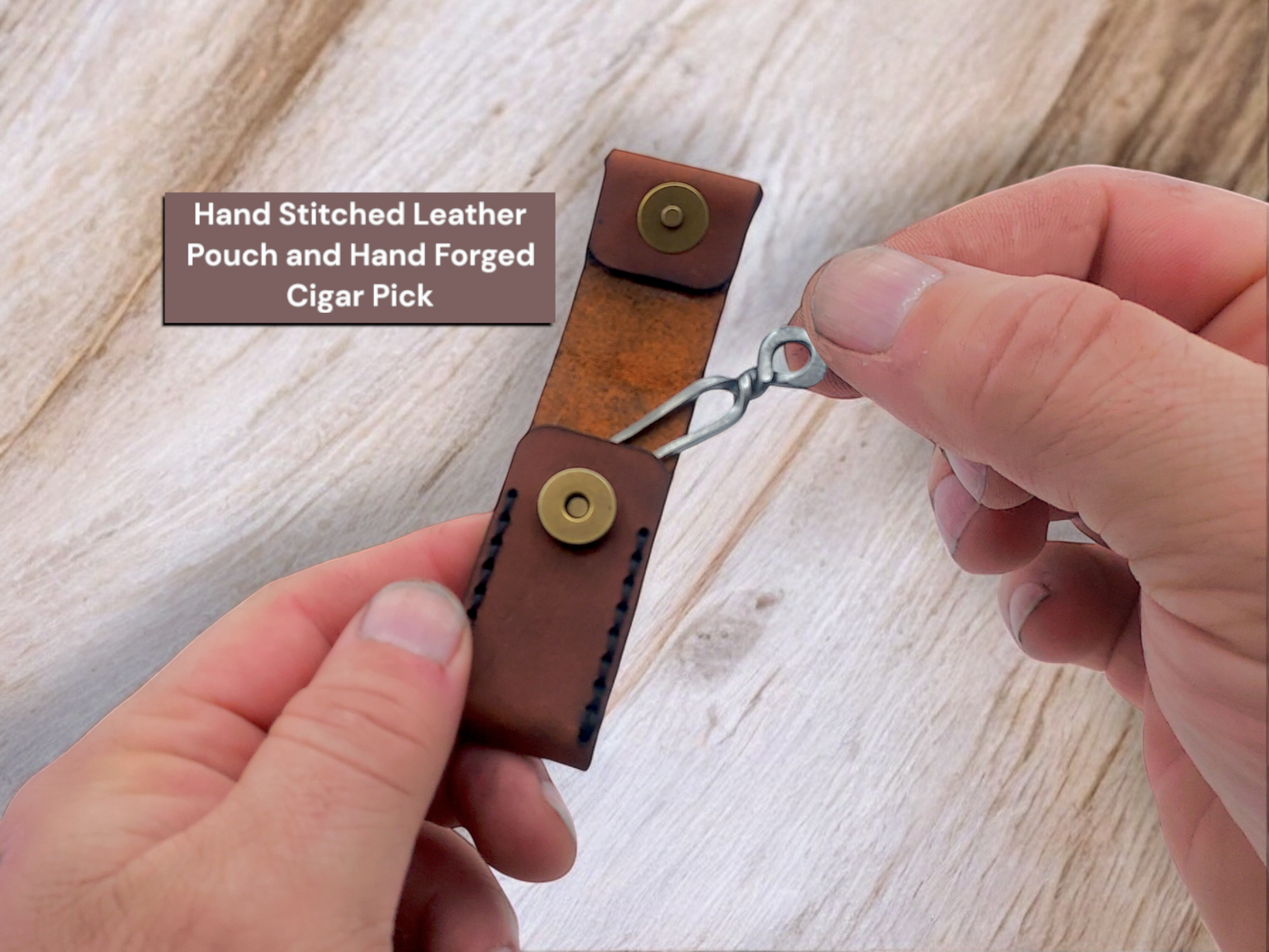 This gift set combines my hand forged unique cigar pick with the much requested leather pocket pouch. Your new cigar pick fits perfectly inside the pouch which protects your pockets and thighs from holes poked while carrying your new favorite cigar smoking accessory. A magnetic clasp holds the flap securely closed while carrying in your pocket, yet is easy to pop open to get access to your cigar pick inside. Made with the finest quality leather sourced from the best handmade focused leather suppliers. I love selecting the best quality materials and helping to support our small business community!