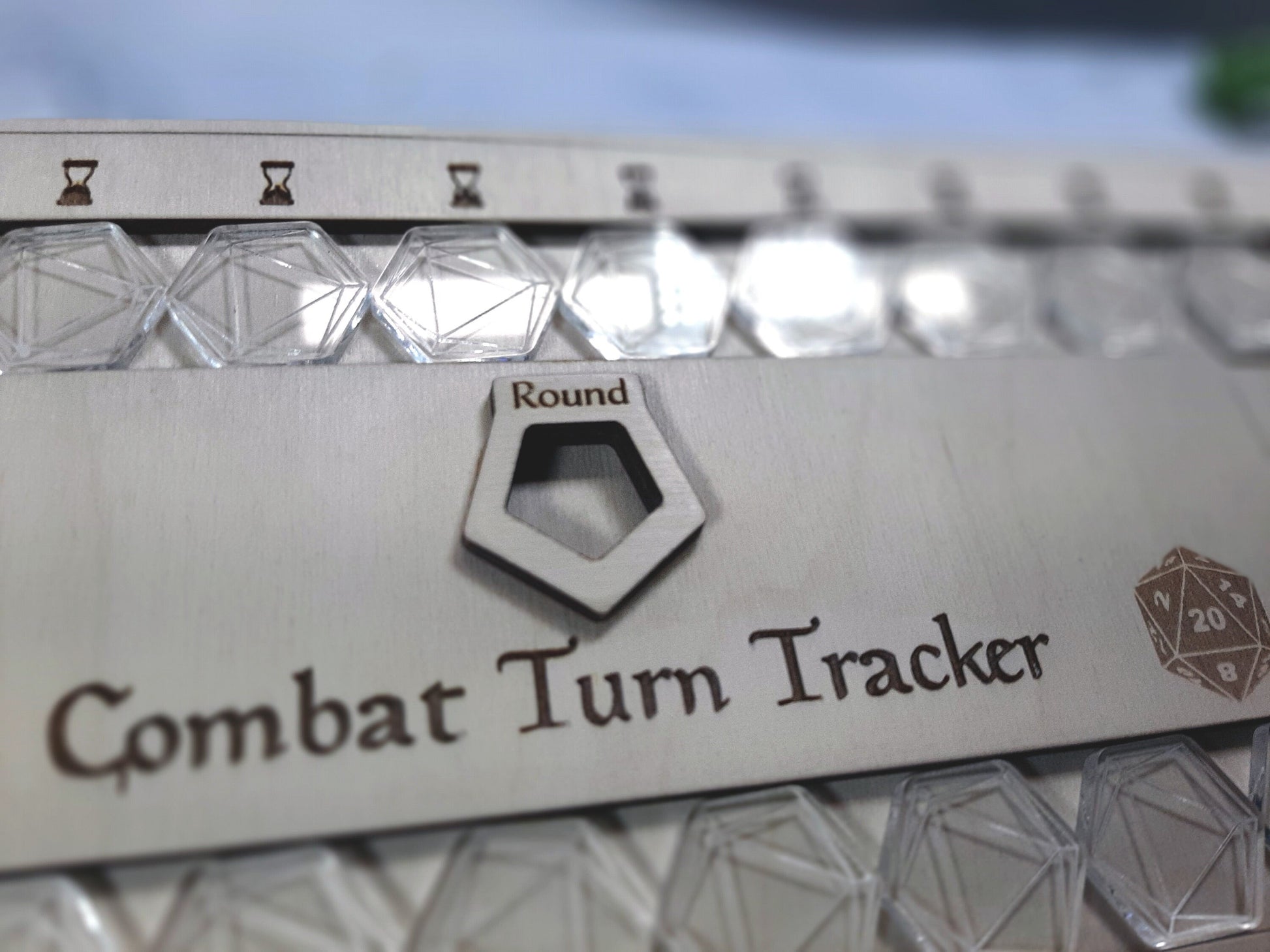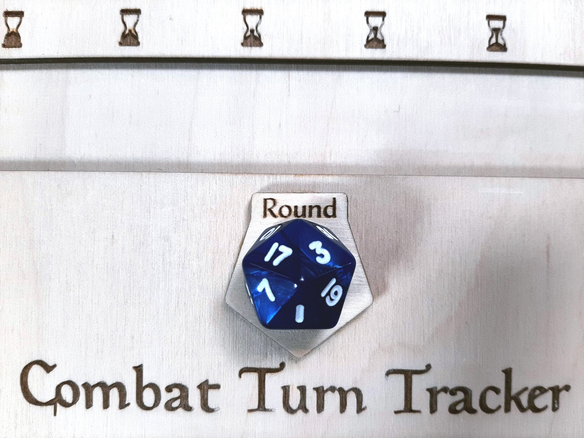 This deluxe version of the Combat Turn Tracker also has a cradle to snugly hold a D20 (not included) that can be used to keep track of what round you are in. Perfect for keeping tabs on when temporary player statuses and buffs are due to expire.