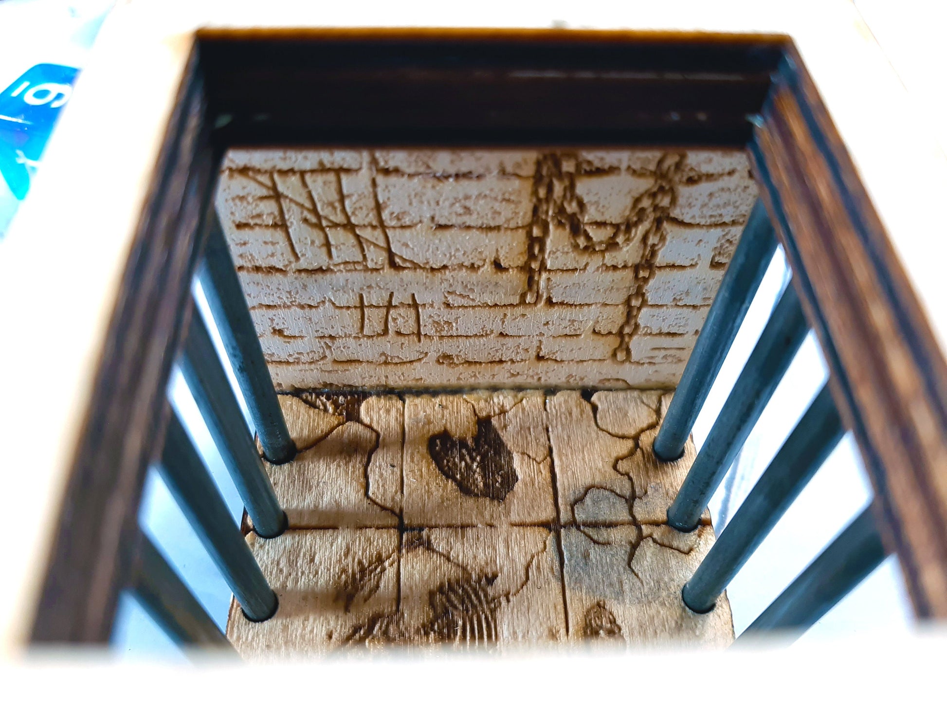 Well if you add this Dice Jail to your arsenal, they can spent a stint in the coolest little slammer you've likely encountered! And rightly so! No DM or player deserves to have to continue rolling a die that is misbehaving. This is an original design that I laser engrave, cut, and hand assemble. The real steel bars are cut in my blacksmith shop, and give this dice jail a unique look that you almost certainly won't find anywhere else. The Dice Jail easily accommodates any die that you find guilty of egregious offense. But who am I to tell you how to run your own prison... This dice jail has room to fit several dice if you hit a streak of bad luck. Overcrowding should be none of your concern. The Dice Jail is filled with fun little details that you can discover if you look closely.