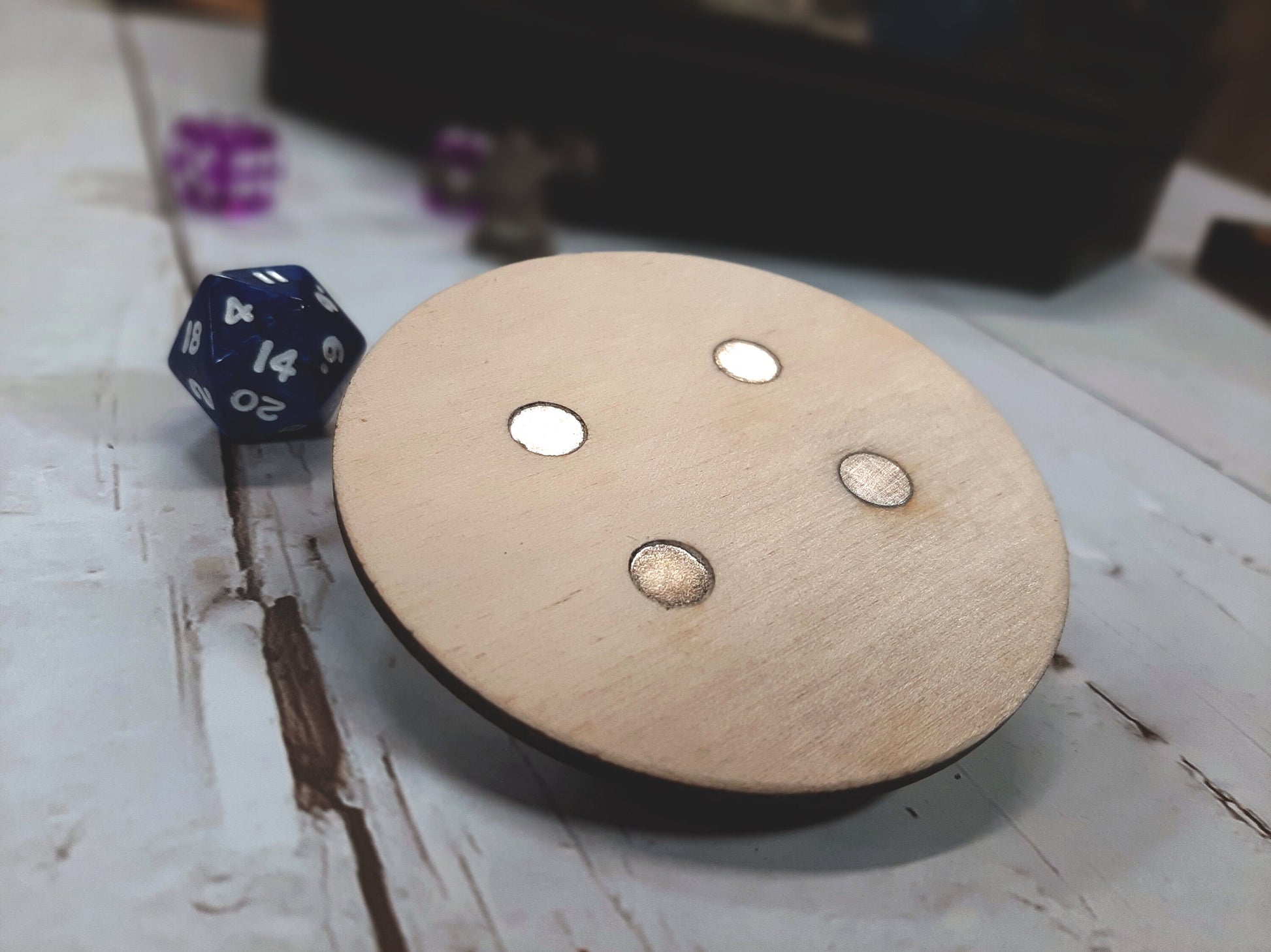 The magnet measures 3" tall and wide and is made from Baltic birch wood.