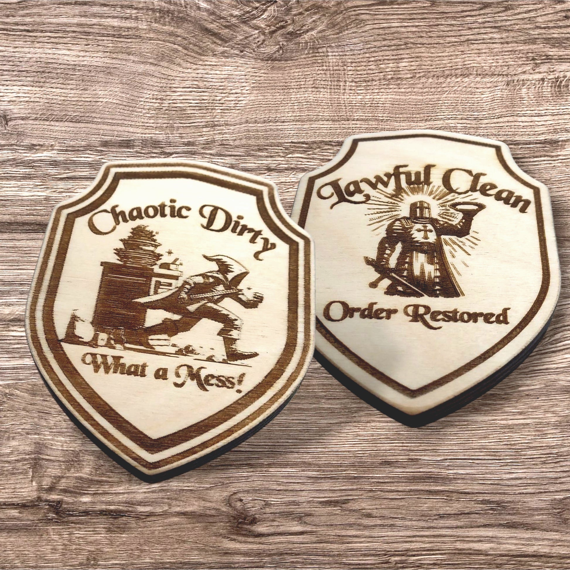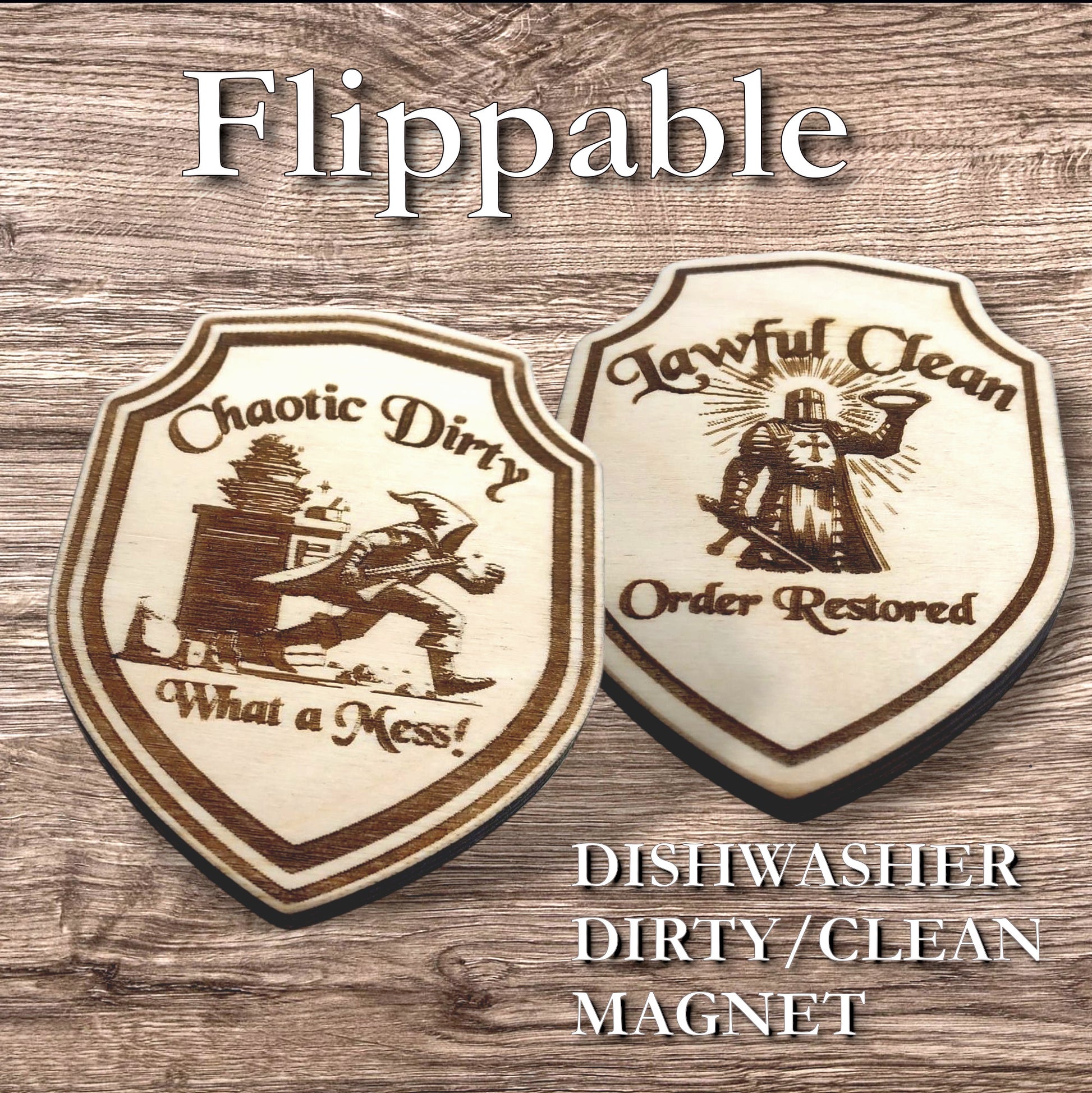 Dishwasher Dirty / Clean Magnet Indicator Two Sided - D&D Alignment role playing themed dish magnet