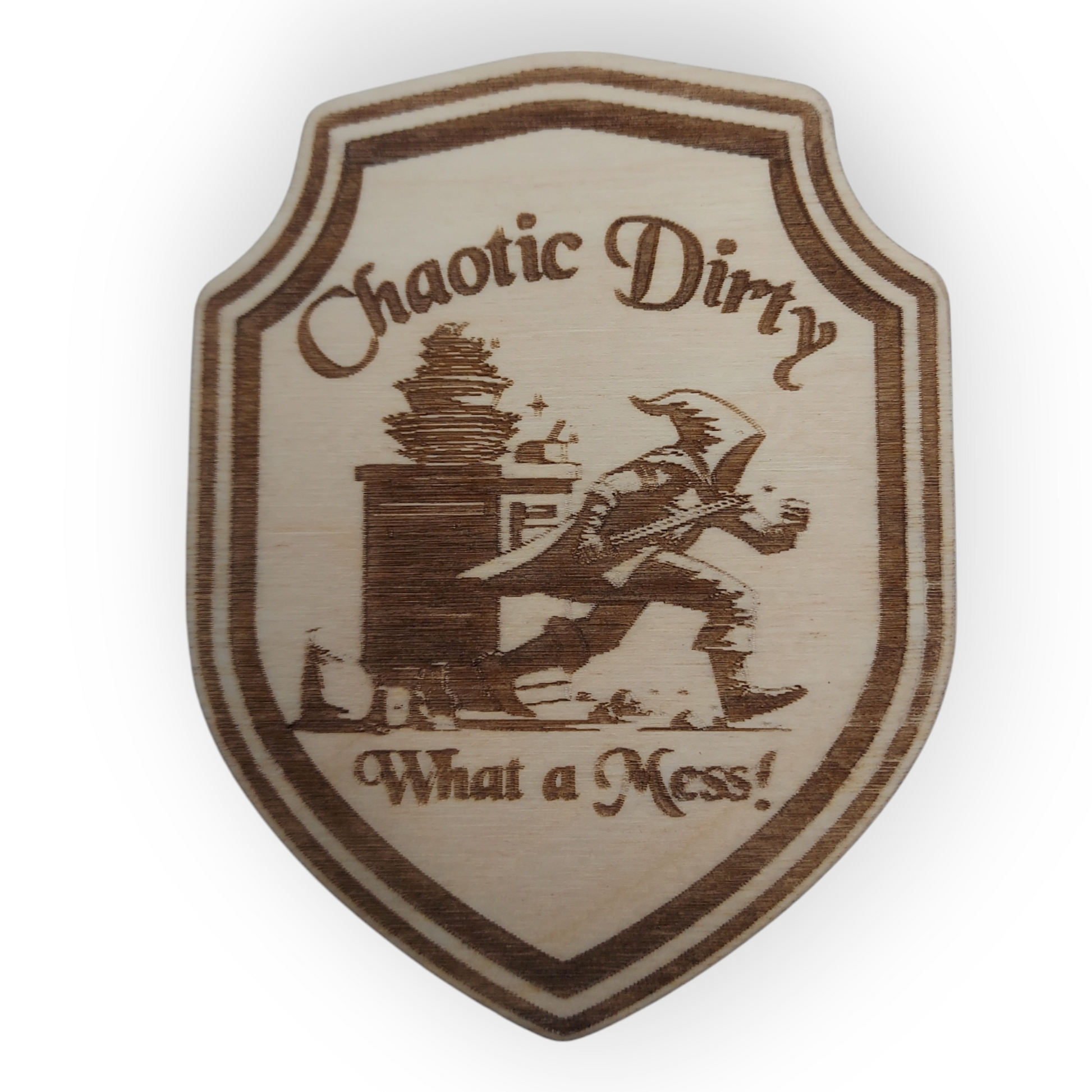 This wooden magnet has the images and lettering laser engraved so they will never fade. A large rare earth magnet is placed inside the middle layer of wood to allow the magnet to stick to any magnetic metal surface. Simply flip the magnet to the "Chaotic Dirty" side when you load the dishwasher, and flip the magnet to the "Lawful Clean" side after you've started the cleaning cycle so everyone will know whether the dishwasher load is clean or dirty.