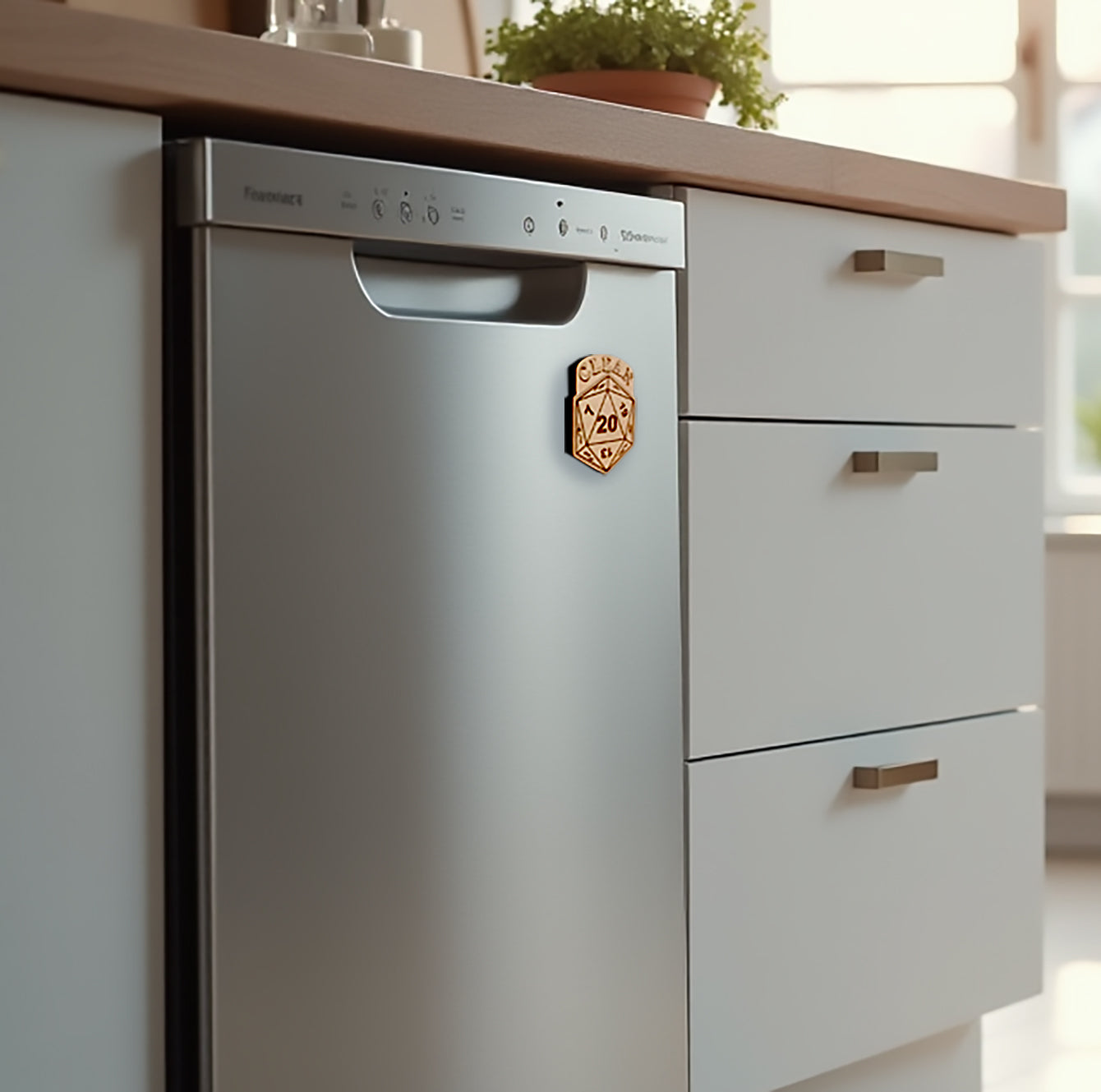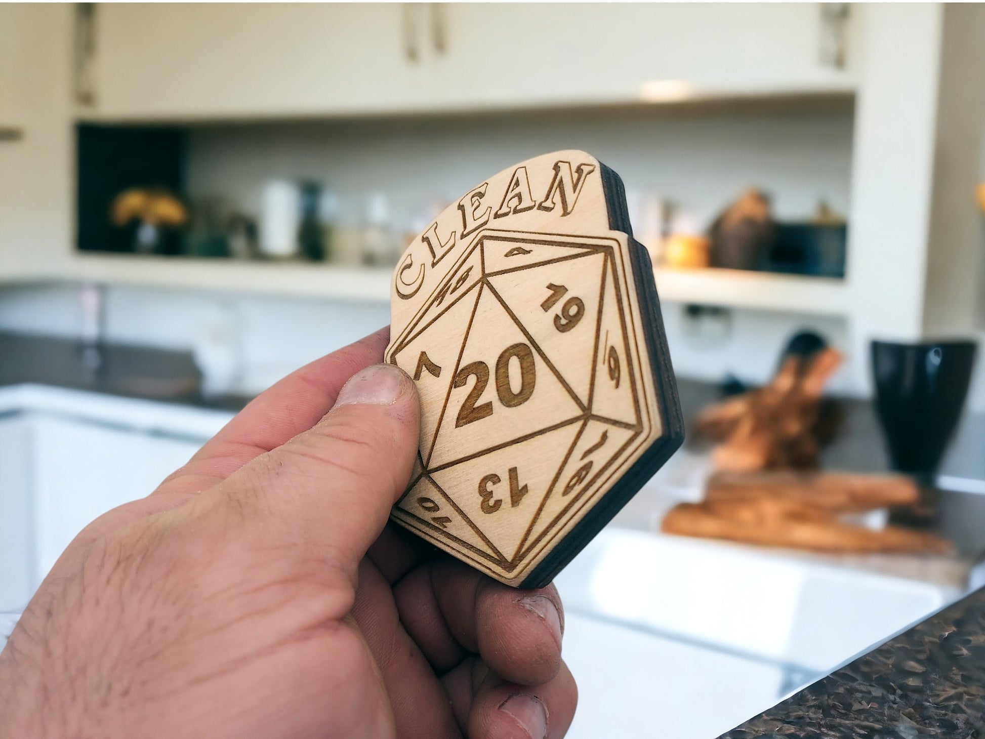 Never wonder about the status of your dishes inside your dishwasher ever again. This Role Playing D20 themed dishwasher magnet will clearly display whether the dishes in the dishwasher are clean, with a glorious NAT 20, or if they are dirty with a filthy dirty 1. you get it, your friends will get it. And maybe your dishes will get it and be motivated to stay on the clean side so they don't have to wear the mark of shame of a critical fail roll.