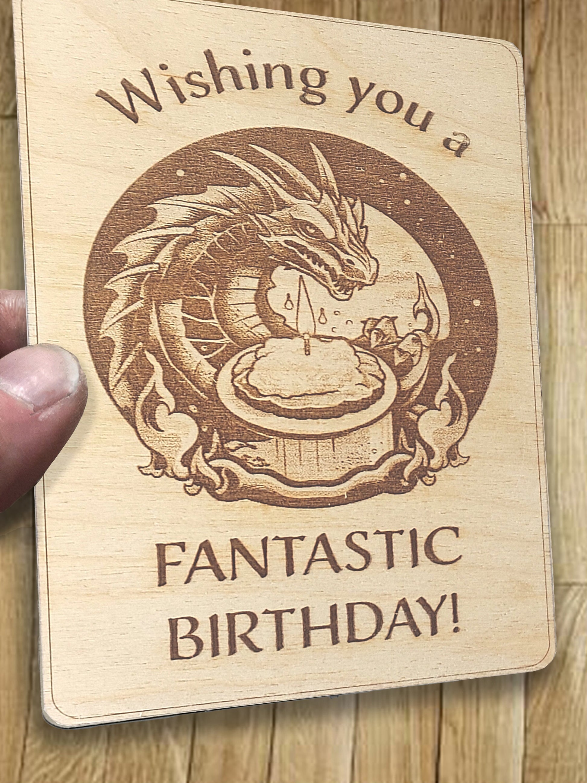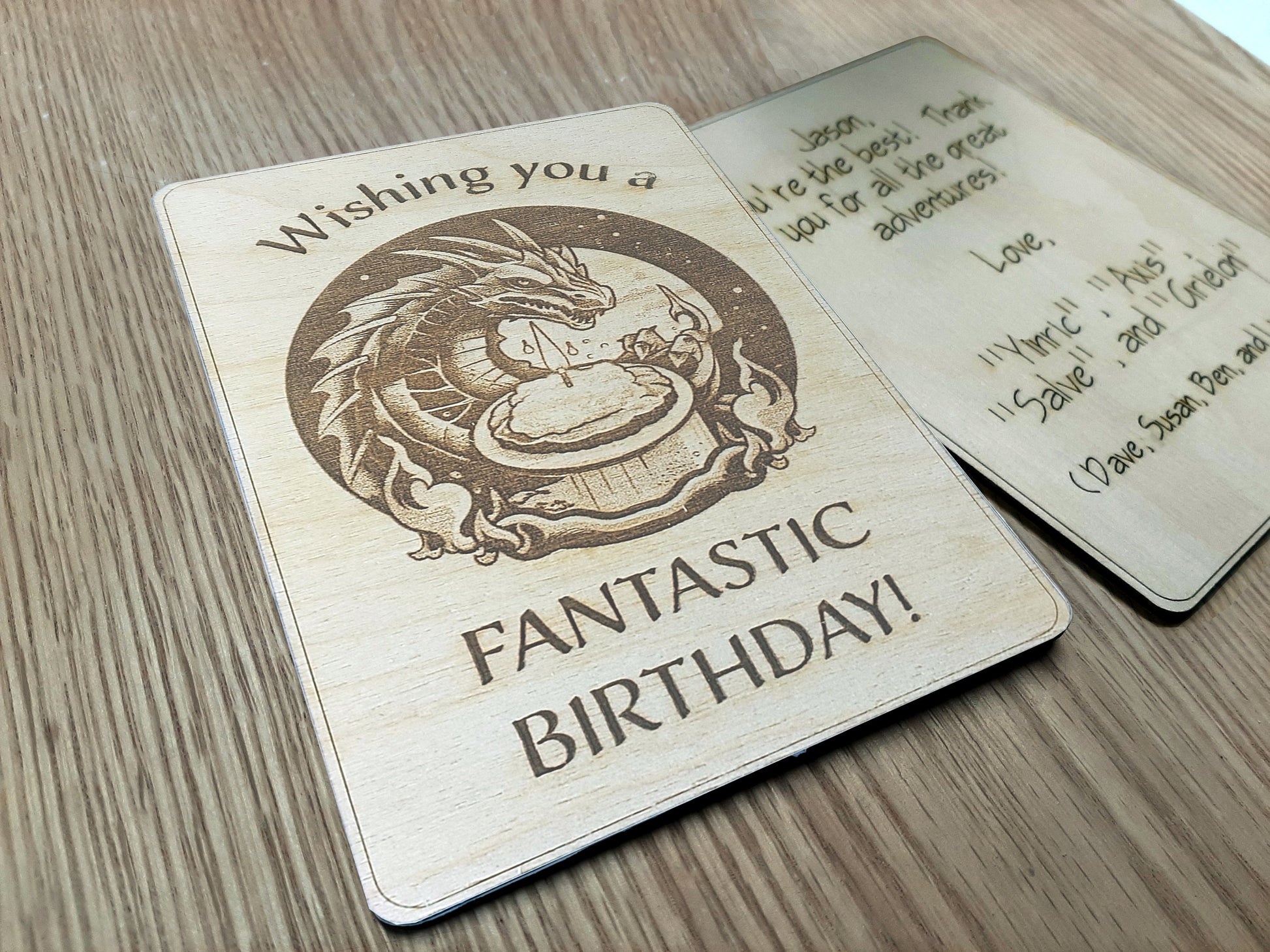 Fantastic Birthday- Birthday Card -Adventurous birthday card, engraved wood, rpg gamer gift, role-playing games d&d dnd