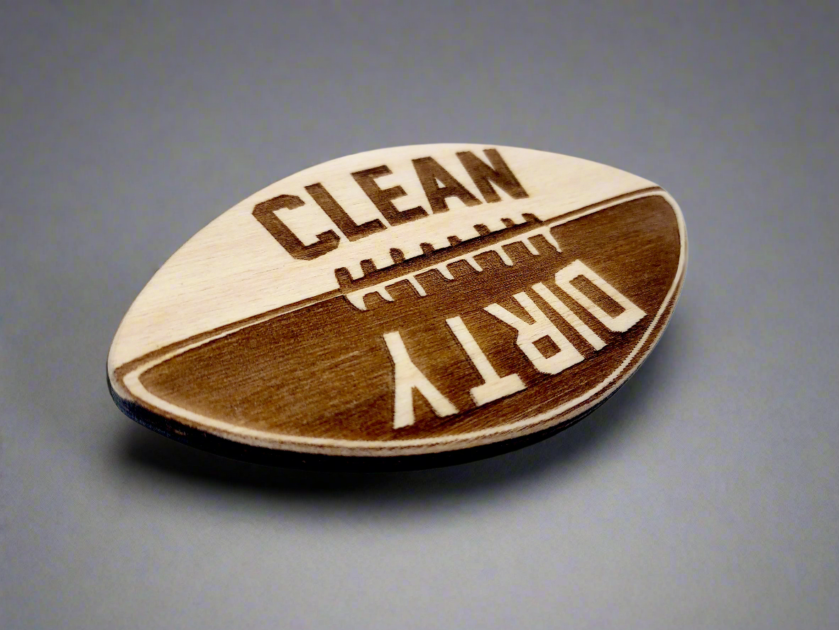 Tackle the kitchen mess with style! This laser-engraved wooden football dishwasher magnet is a fun and functional way to show whether the dishes are clean or dirty—no more guessing plays!