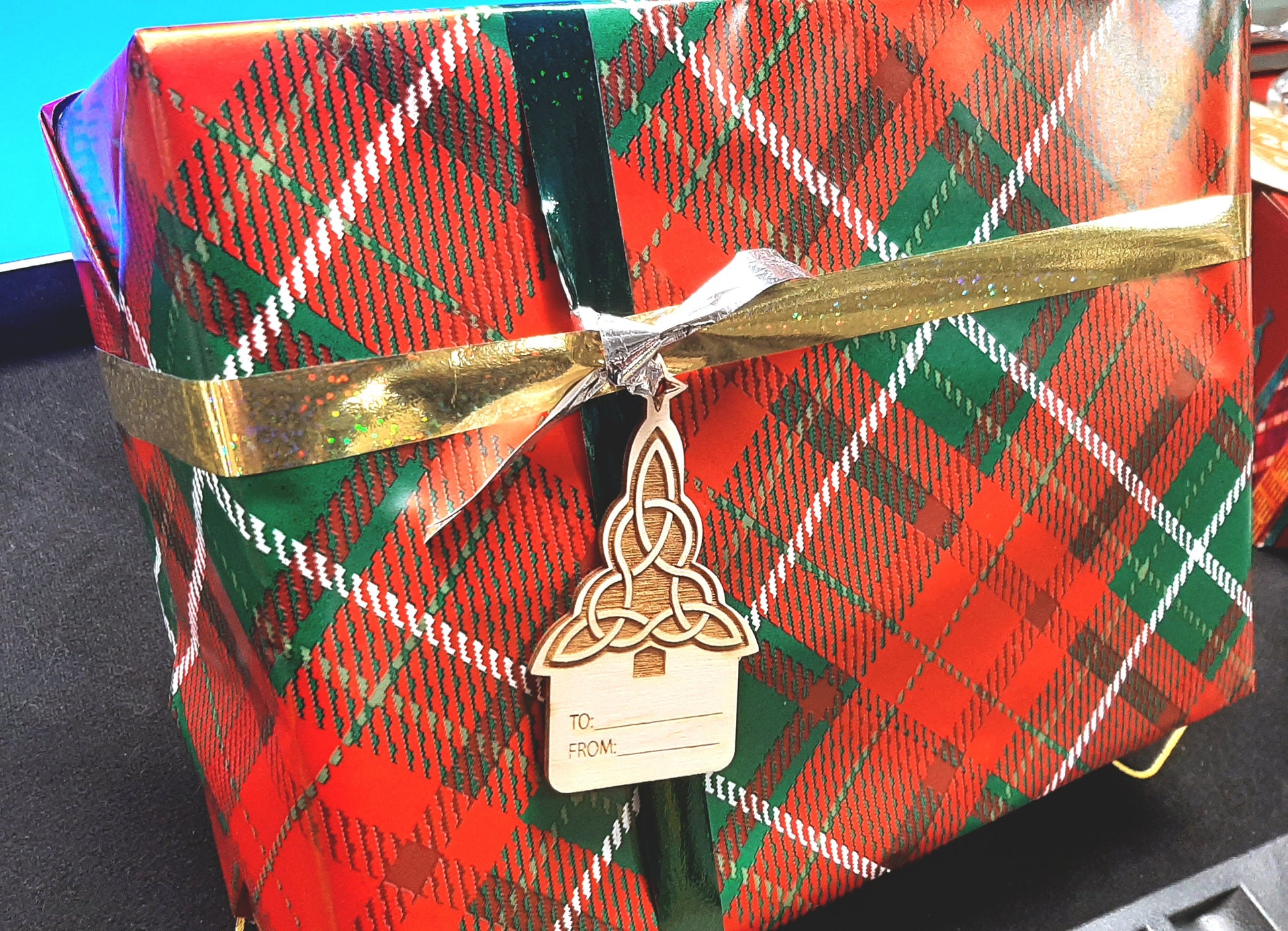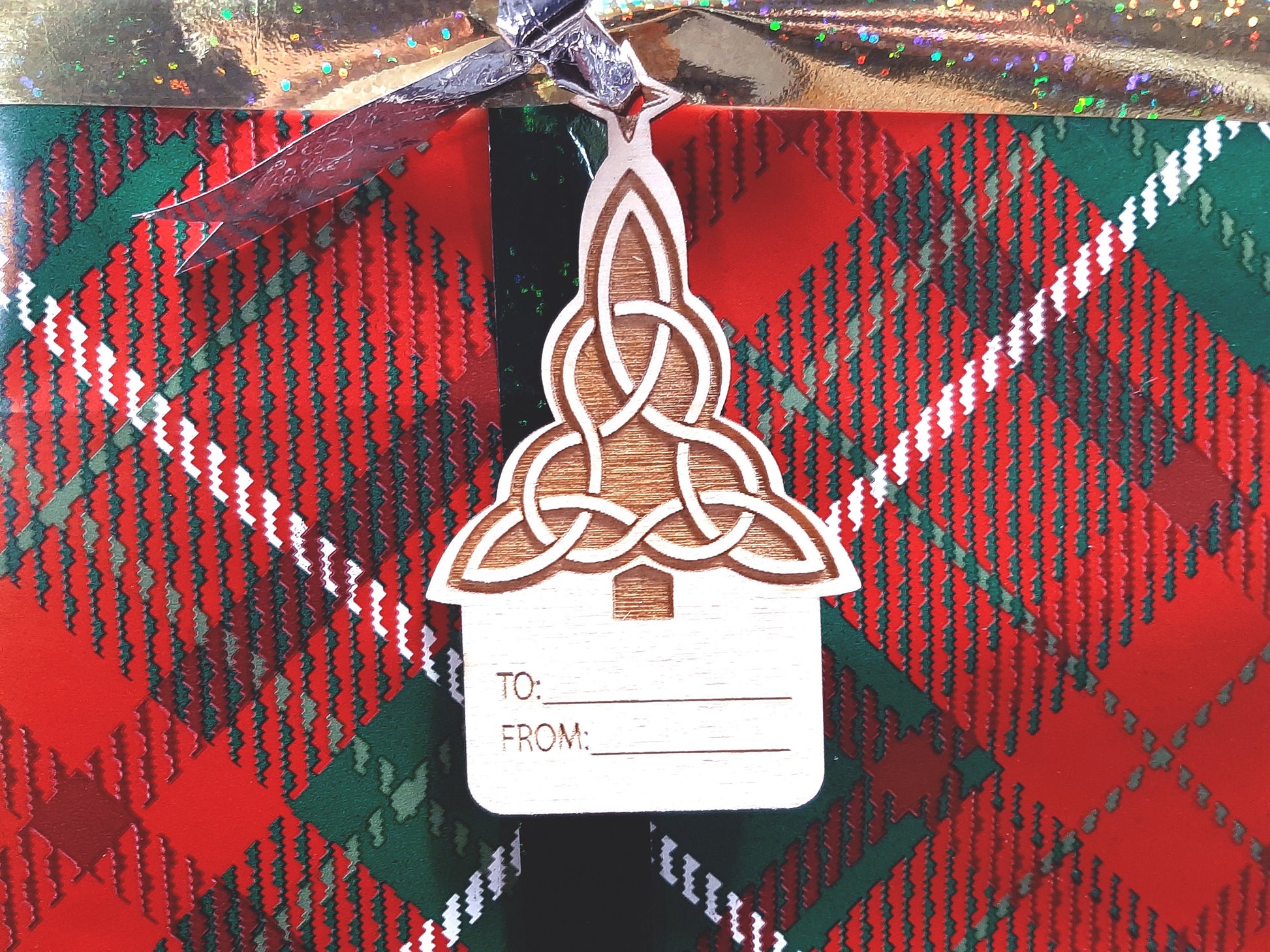 Gift Tag - Celtic Christmas Tree engraved gaming gift wrap label Celtic inspired birthday or holiday hang tag