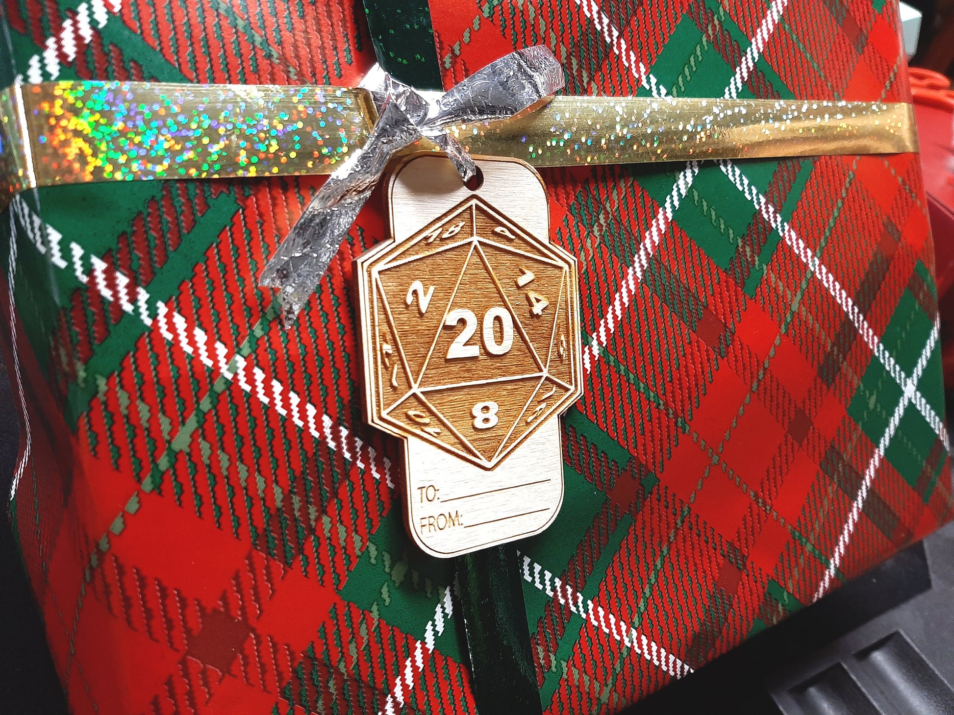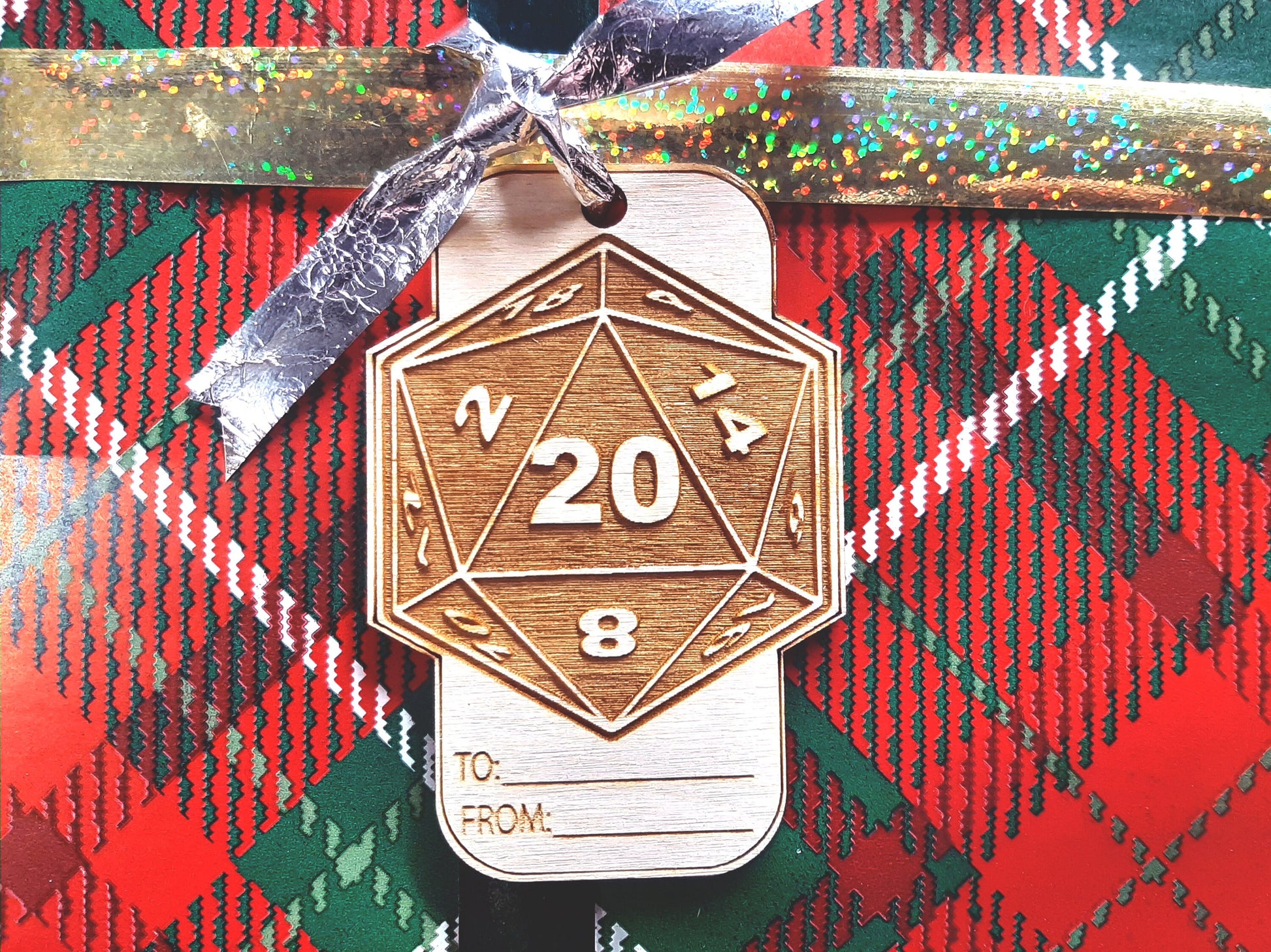 Gift Tag - D20 D&D engraved gaming gift wrap label RPG tabletop themed birthday or holiday hang tag