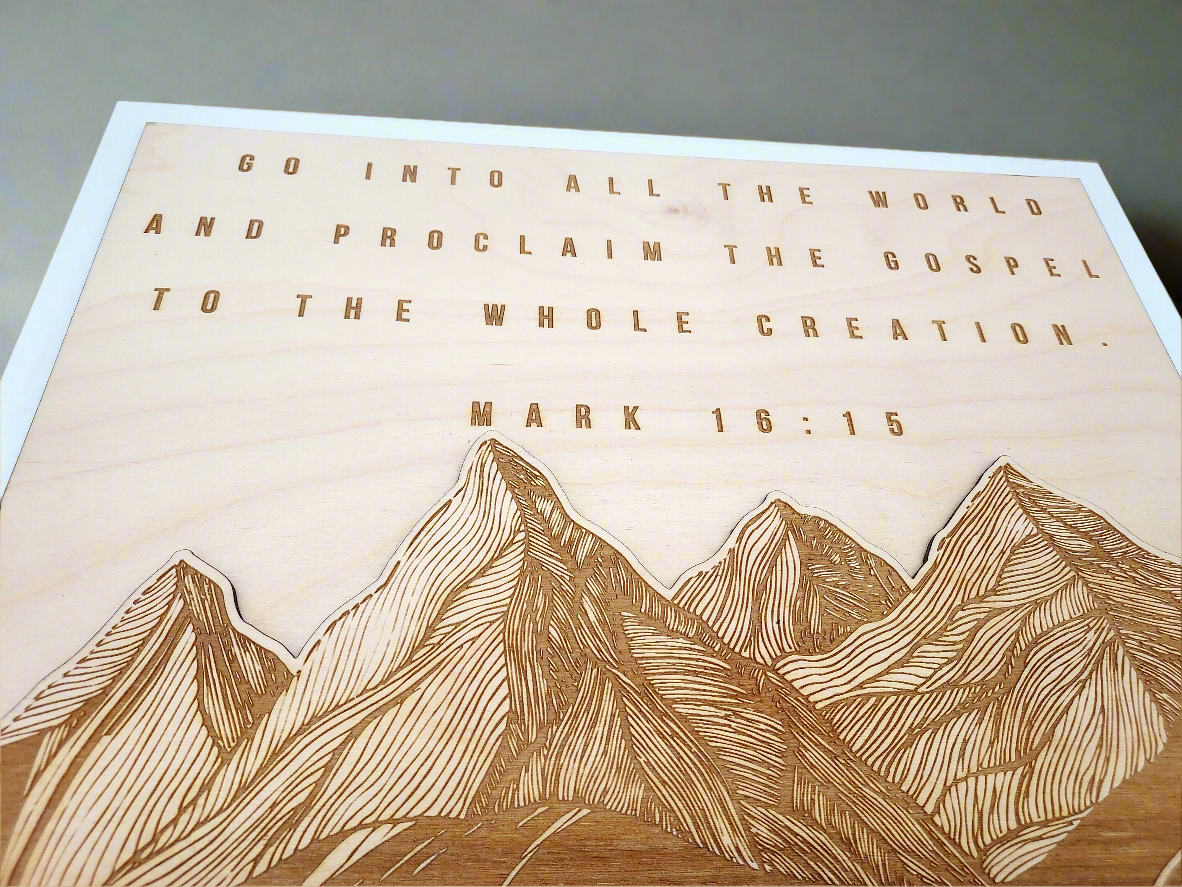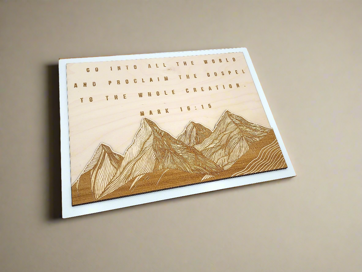 ● Mark 16:15 Scripture – Laser-engraved on birch wood