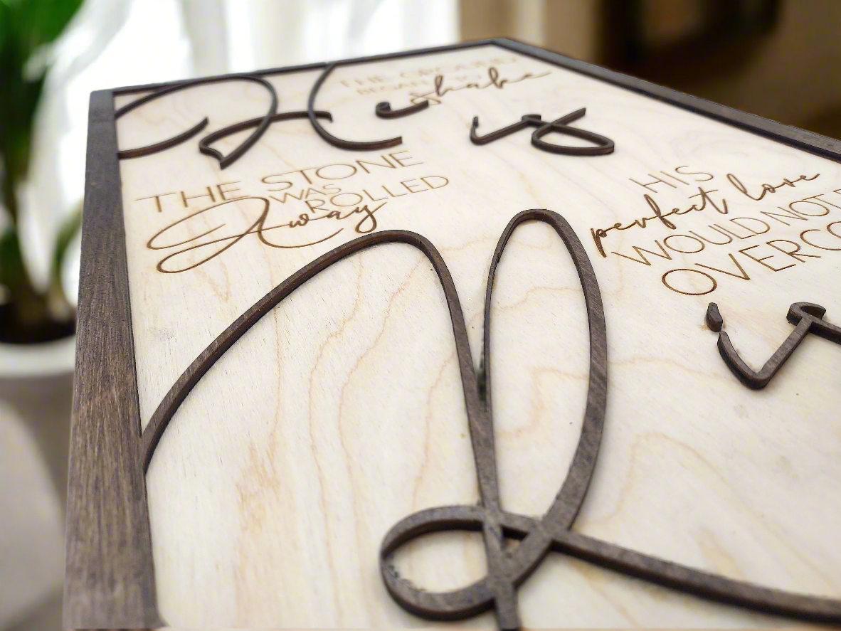 Engraved resurrection lyrics – Beautifully etched into the wood background