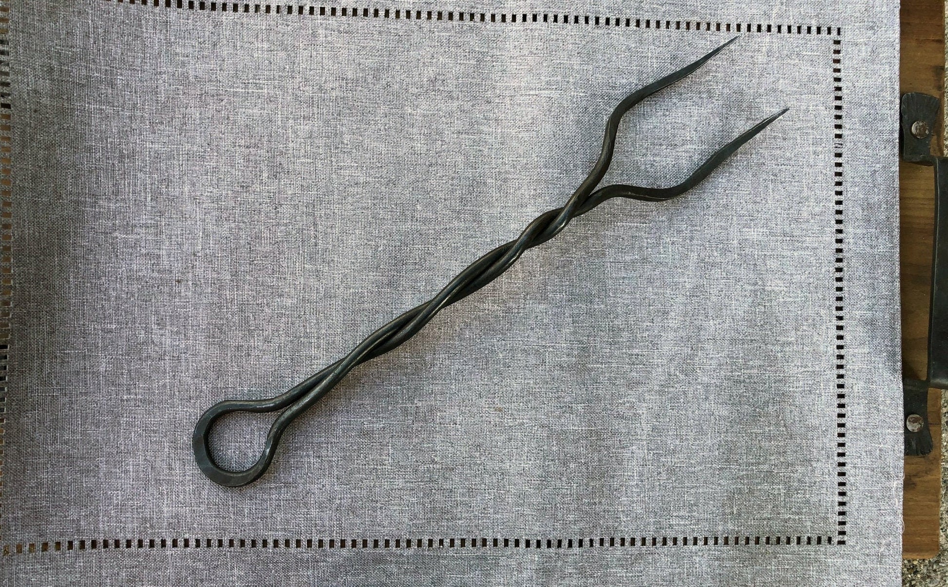 Hand Forged using traditional methods, this beautiful fork features a twisted steel handle made from solid 1/4" steel. The fork tines are forged from the single solid piece of steel and are very strong. Amazing to hold, and built to last for generations!