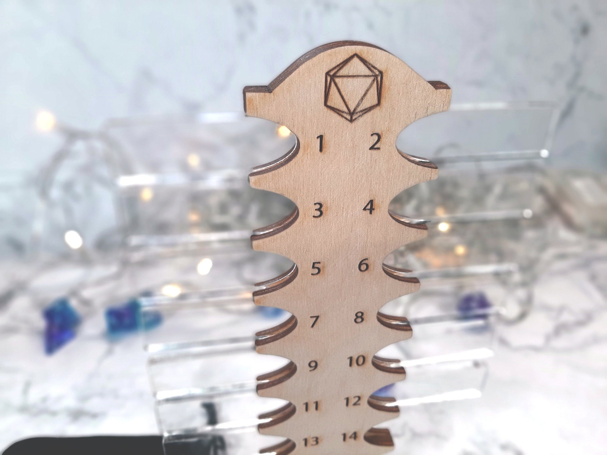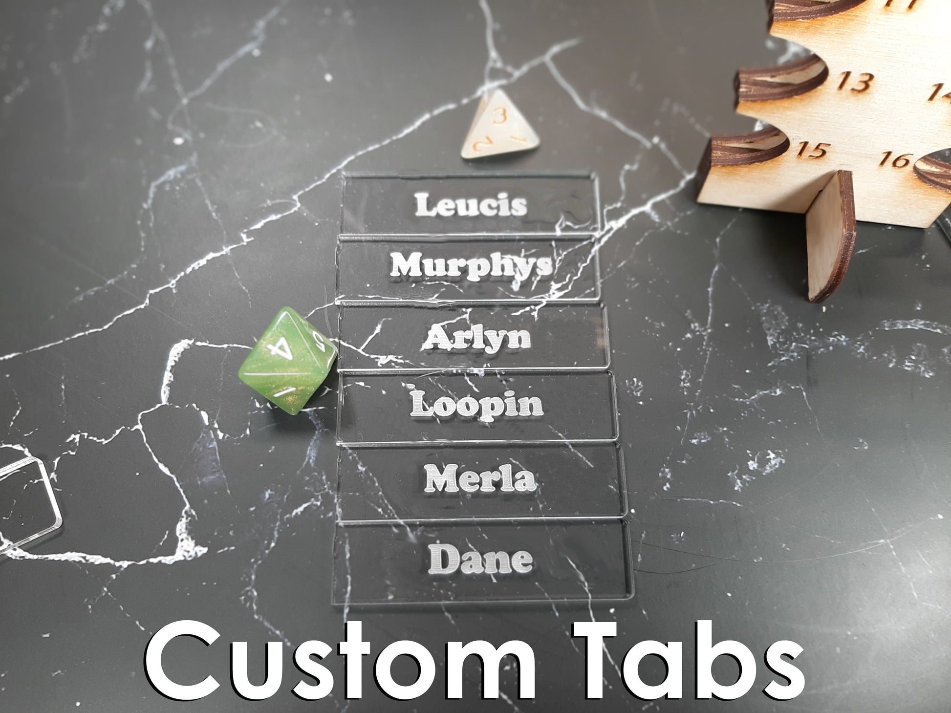 Custom Set: Comes with the 16 slot Initiative Tracker tower, 16 regular clear tabs, your selected number of customized tabs, a felt pouch for storage of the tabs, and the base stand. Select the number of custom tabs you would like from the options, and enter the names that you would like engraved on the tabs into the "Customization" text box. Separate the names with a comma. If I have any question about what you are requesting, I will reach out to you via Etsy Message. The customized tracker comes with a soft, felt pouch for storage of the tabs and the base stand.